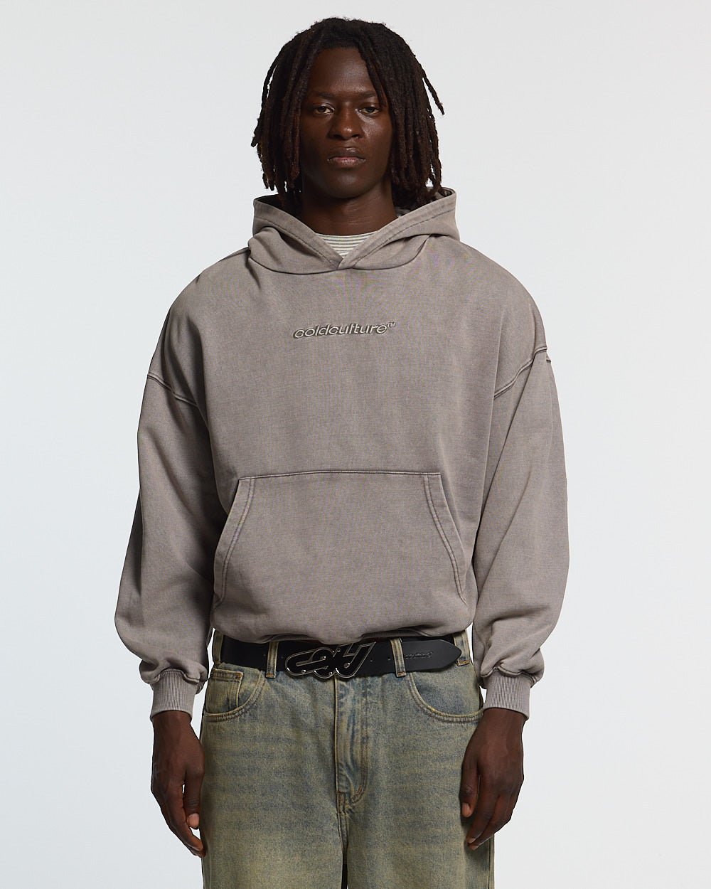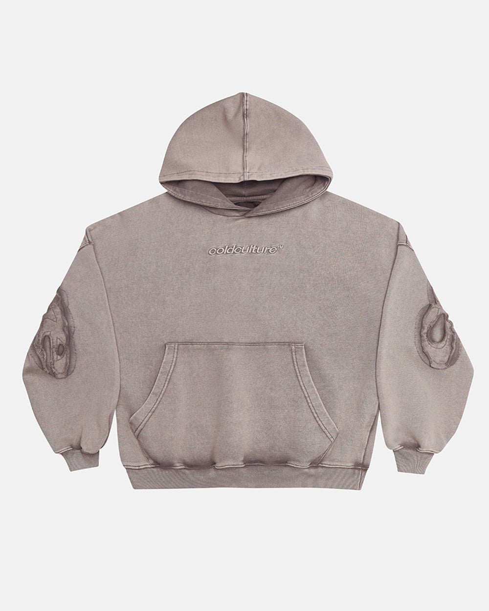 DISTRESS CURVED HOODIE GREY