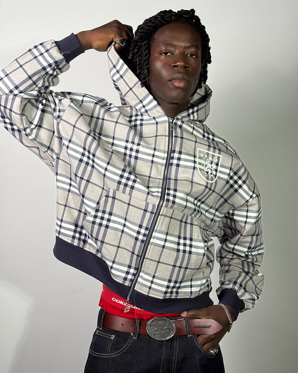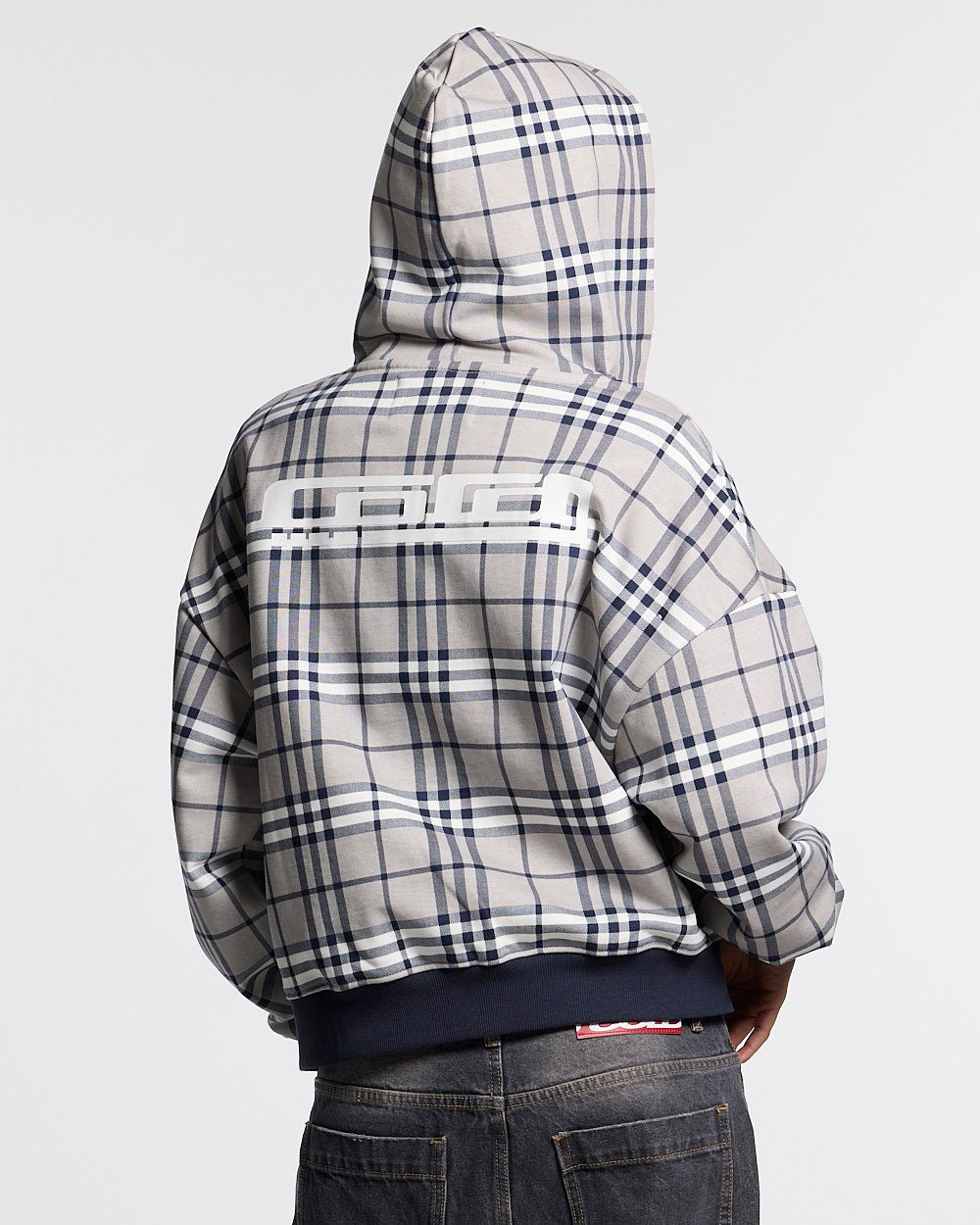 GRID ZIP HOODIE TARTAN DARK BLUE/GREY