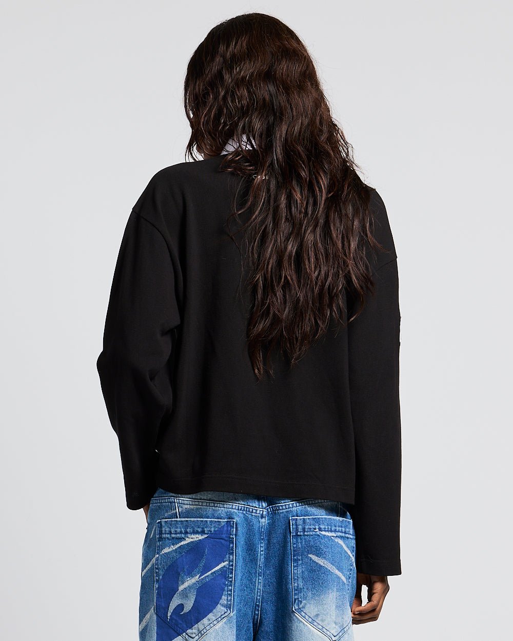 DISTRESS CURVED LONGSLEEVE BLACK