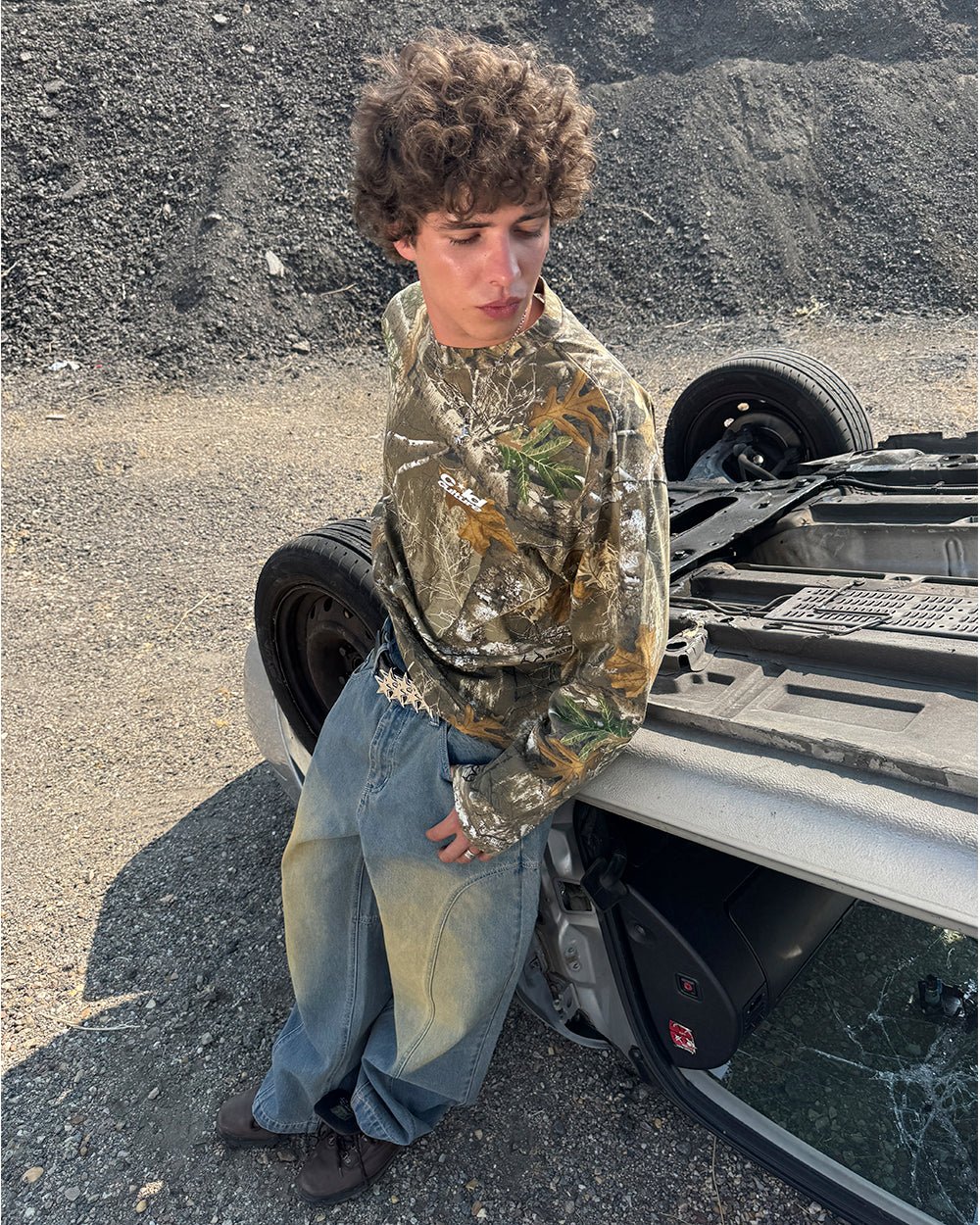 DISTRESS CURVED LONGSLEEVE BLACK