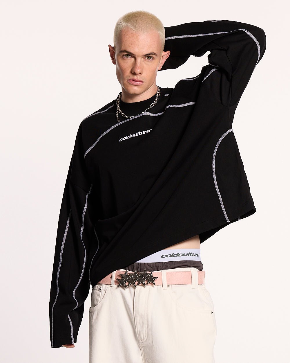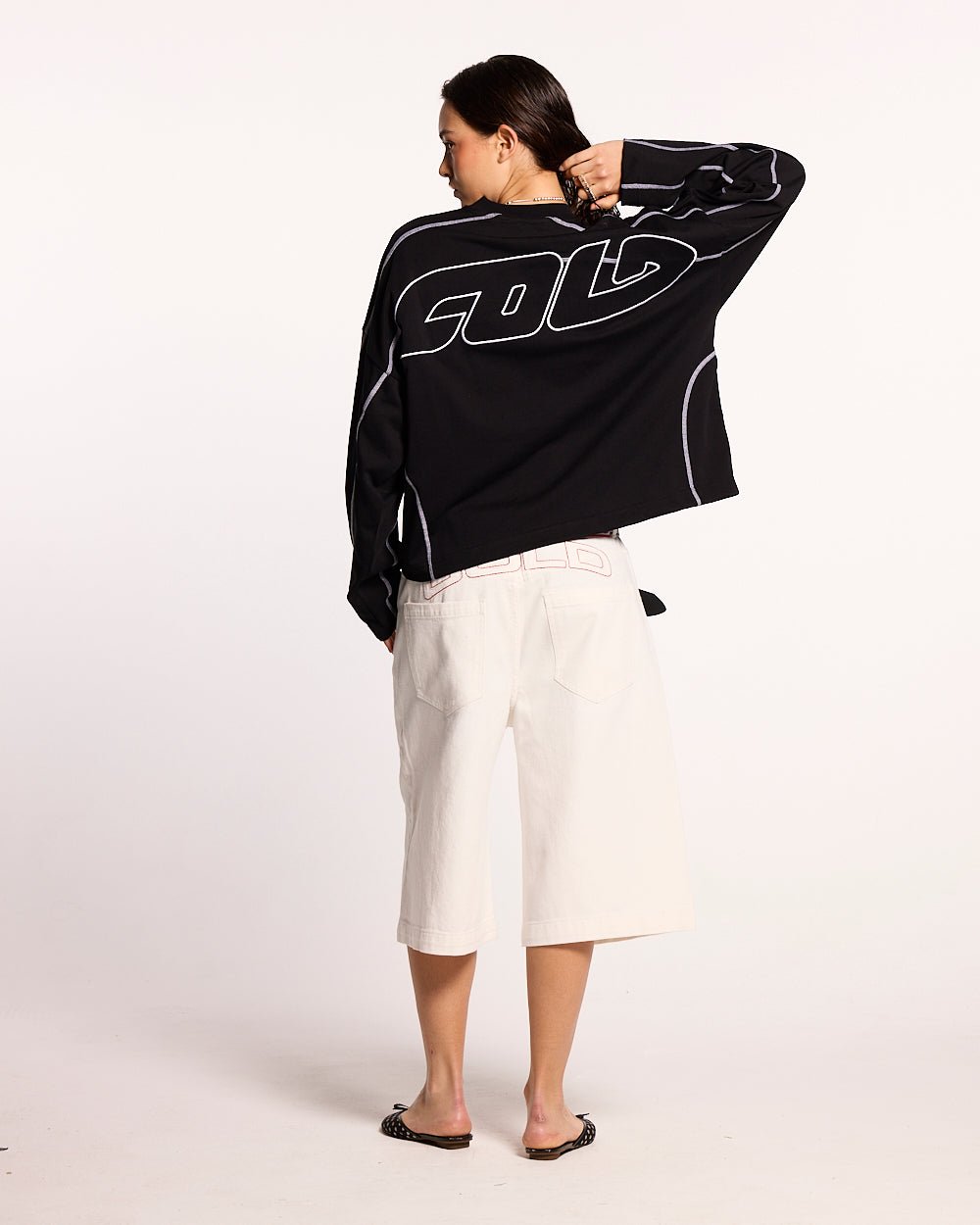 DISTRESS CURVED LONGSLEEVE BLACK