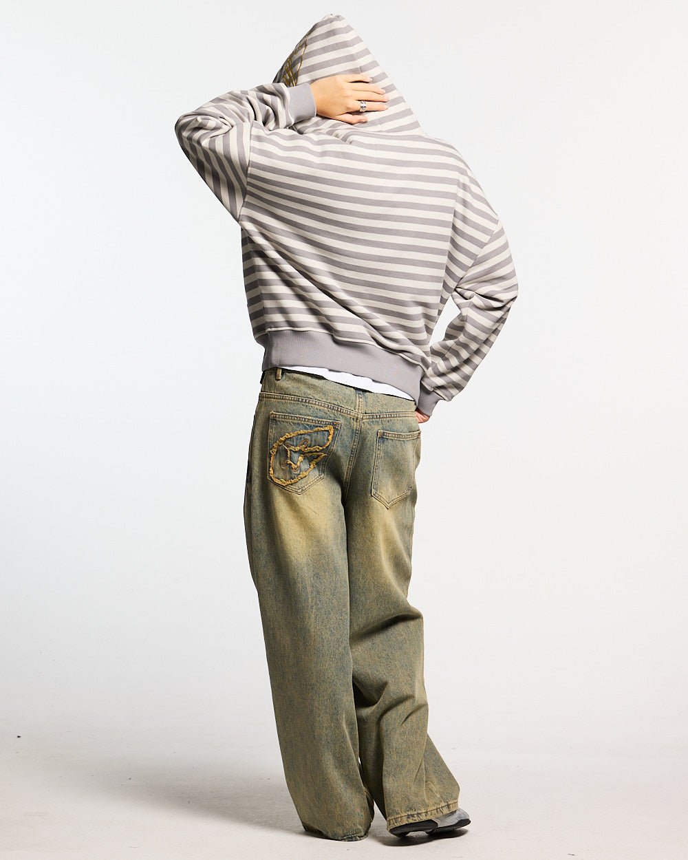 Logotipo bordado en la capucha y en la parte delantera en color amarillo.