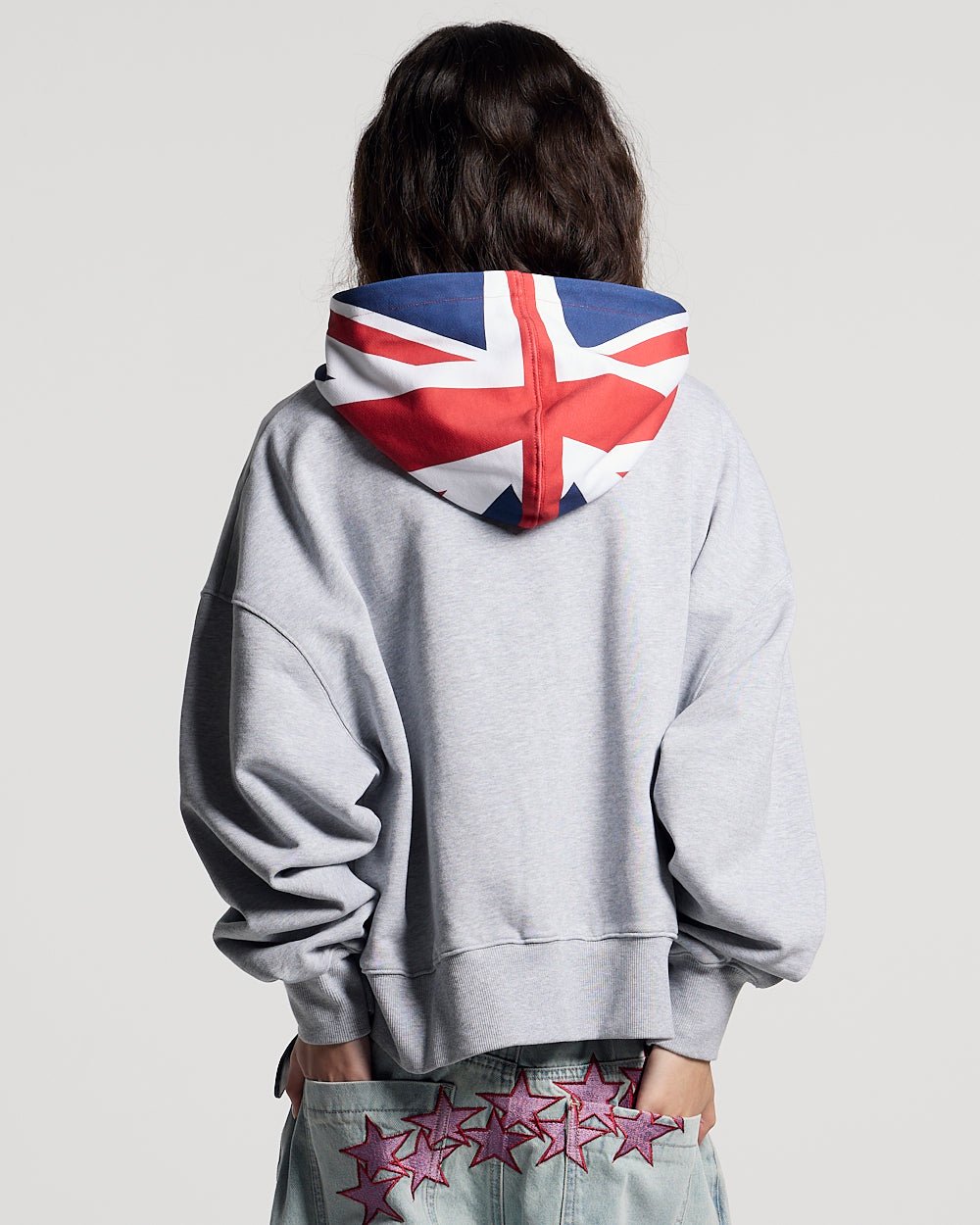 Bandera del Reino Unido estampada en la sudadera con capucha.