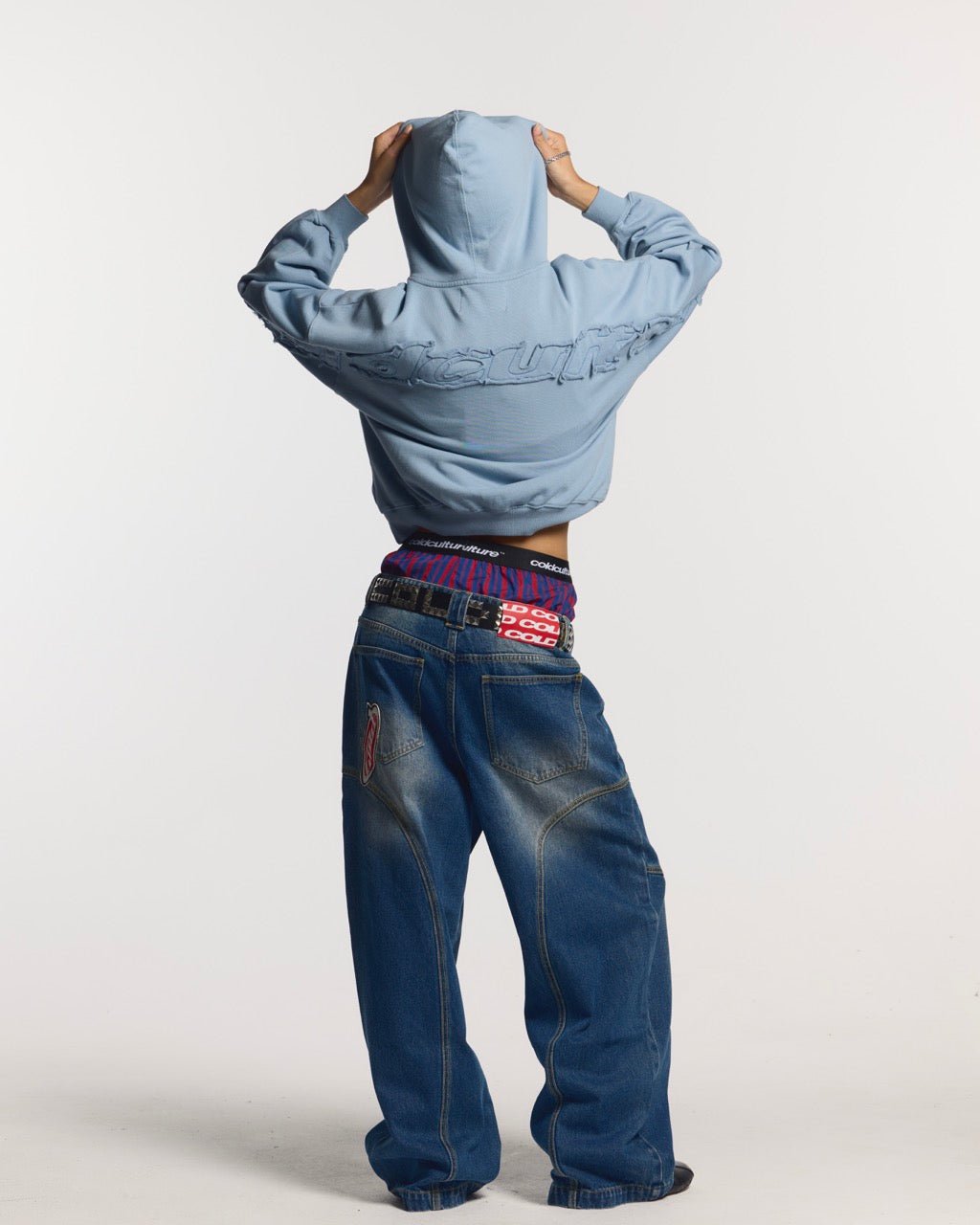 SUDADERA CON CAPUCHA CURVA DISTRESS AZUL SOMBREADO