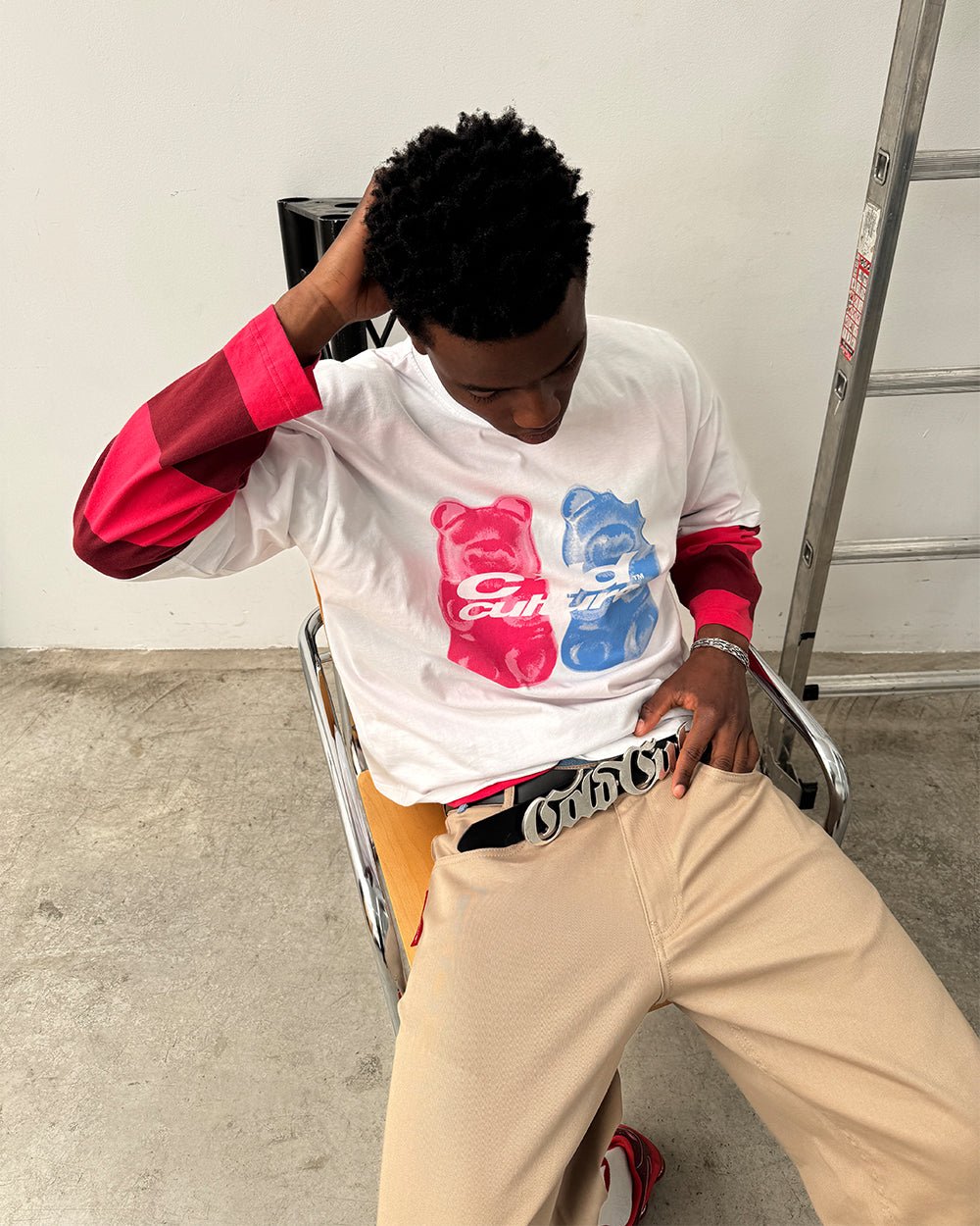 CAMISETA TRIBAL DE MANGA LARGA GRIS Y BLANCO ROJO