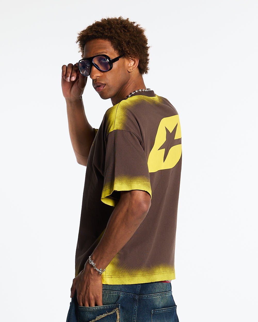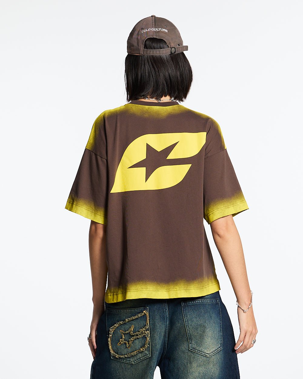 CAMISETA TRIBAL DE MANGA LARGA MARRÓN Y AZUL